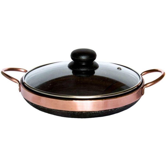 Frigideira De Pedra Sabão 20 Cm Com Tampa De Vidro
