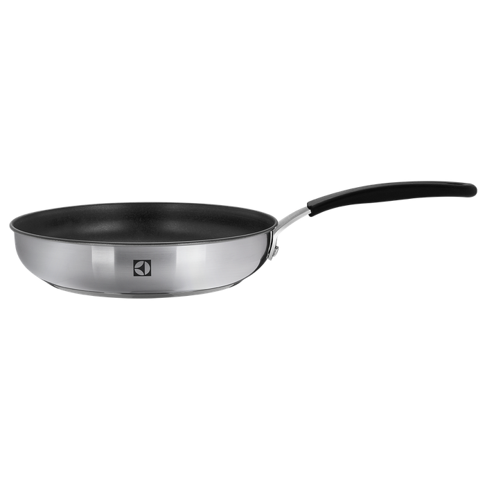 Interior antiaderente Classe A, livre de PFOA, com cabo de silicone antitérmico para conforto e segurança no uso. Feita em aço inoxidável com acabamento escovado, tem design exclusivo Electrolux.
