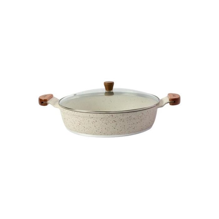 Frigideira Marmorizada Alça de Madeira e Alumínio 4,7 L - Bege
