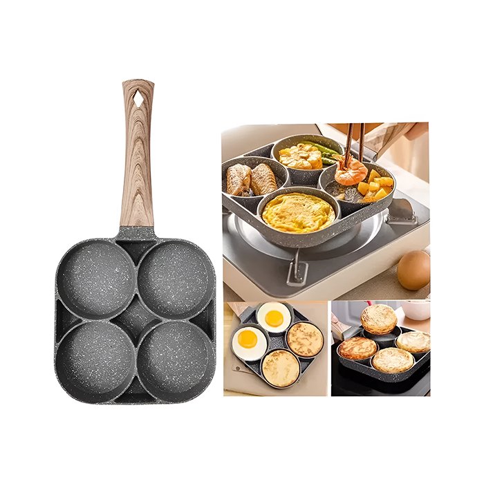 - Linha: Frigideira antiaderente com quatro divisórias circulares.