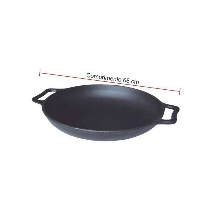 Frigideira paella confeccionada em ferro fundido de alta qualidade, com diâmetro de 60cm e 9cm de altura.