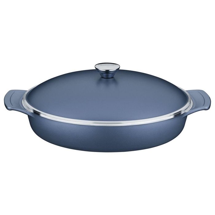 A frigideira Tramontina Lyon em alumínio forjado com revestimento interno e externo em antiaderente Starflon High Performance azul elementar 32 centímetros de diâmetro 4,3 litros é a escolha perfeita para quem busca qualidade e praticidade na hora de cozinhar. Desenvolvida em alumínio, ela proporciona um aquecimento rápido e uniforme, garantindo um preparo eficiente dos alimentos e sem que eles grudem em sua superfície, pois também conta com revestimento interno e externo em antiaderente Starflon High Performance. Compatível com todos os tipos de fogões, incluindo indução, essa frigideira oferece versatilidade no momento de escolher onde preparar suas receitas favoritas. E o melhor de tudo: ela pode ir ao forno sem a tampa, permitindo que você finalize seus pratos. Uma frigideira que proporciona uma experiência culinária excepcional e garante toda a qualidade e praticidade que você merece na cozinha!
