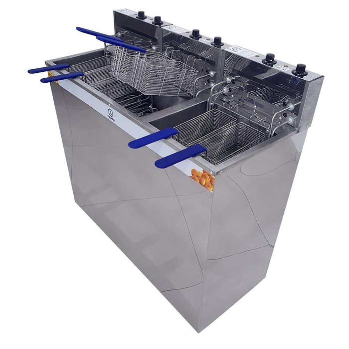Importante: A tomada que será utilizada deve ser uma tomada industrial de 32A 220V para plugue Steck. O Produto não acompanha o Plugue Steck. Sua cozinha profissional começa aqui! Fritadeira Elétrica Água e Óleo JL Colombo Gabinete 2 Cubas 36 Litros e 18 Litros 8000W é a aliada dos chefs que buscam resultados excepcionais. Prepare pratos irresistíveis com facilidade e rapidez.