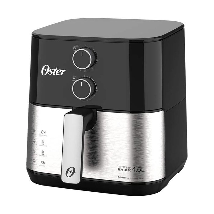 Praticidade ou espaço? A Fritadeira Oster 4,6 litros oferece os dois! Por fora, um design compacto que deixa sua cozinha mais prática e muito mais bonita. Por dentro, ampla capacidade. 4,6 LITROS de capacidade Revestimento interno antiaderente com uma capacidade perfeita para as receitas que a sua família adora, e muito mais saudáveis. 1500W DE POTÊNCIA Seus alimentos ganham mais crocância, e você ganha mais tempo. GRELHA Easy Clean Removível e mais fácil na hora de limpar. Além de possibilitar um preparo por igual, pois a grelha permite que o ar cirule por todo o espaço interno.. TIMER DE 60 MINUTOS Suas receitas prontas no tempo certo. DESIGN COMPACTO Formato retangular e compacto que possibilita um melhor aproveitamento ao distribuir os alimentos internamente, além de facilitar na hora de guardar. AJUSTE DE TEMPERATURA Prepare receitas saudáveis na temperatura ideal. É possível ajustar de 80º a 200ºC. NA