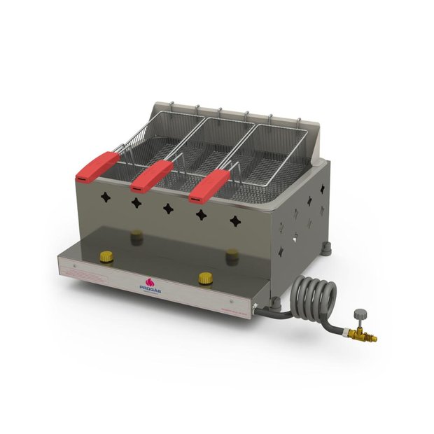A Fritadeira PR-30G é sinônimo de qualidade! Sirva deliciosas comidas com a sua ajuda. Para fazer seu preparo com qualidade, a fritadeira acompanha 1 Kit gás e 3 cestos para escorrer frituras. Fabricado em Aço inox para garantir uma melhor eficiência no preparo de seus alimentos, do jeito que você gosta! Especificações: - Dimensões: 33,9x53,6x45,8 cm - Fabricado em aço inox escovado - Consumo médio 0,7 kg/h - 1 Kit gás - 3 Cestos - Utiliza cuba gastronômica 1/2 65 mm - Capacidade de óleo 3 a 7 L - Capacidade nominal: 10 L - A gás alta pressão - Cor: Inox - As configurações do seu monitor ou dispositivo móvel podem afetar a tonalidade da cor do produto. Conferir na descrição. - Recomendação de Limpeza: Limpar com pano seco para retirar o pó. Não aplicar produtos abrasivos. - Produtos de Enfeite e Eletrônicos Não Estão Inclusos.