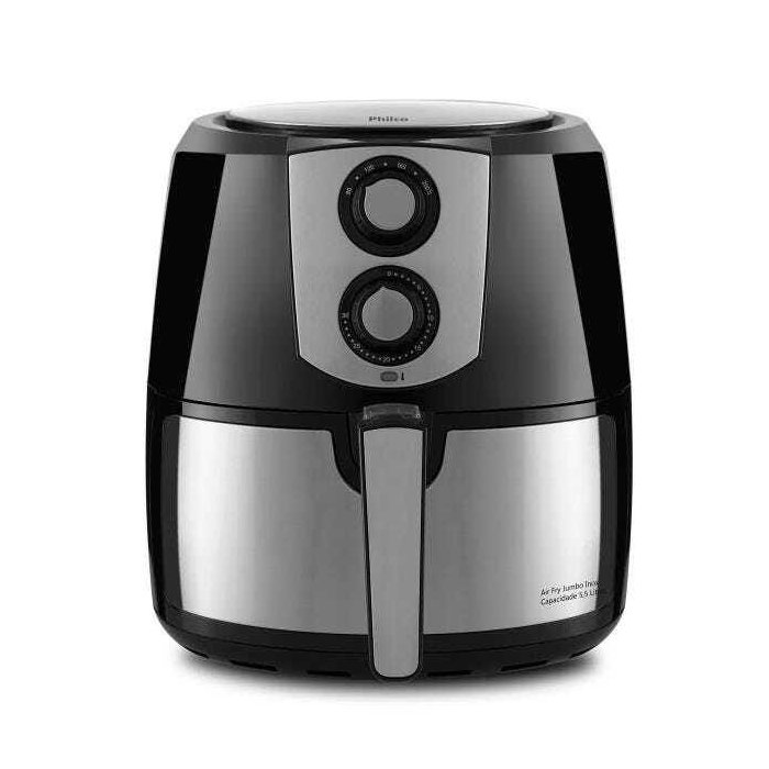 •A Fritadeira Philco Air Fry Jumbo Inox PFR06PI prepara alimentos macios por dentro, crocantes por fora e muito saborosos, mas sem utilizar óleo. Sua saúde e alimentação em dia!