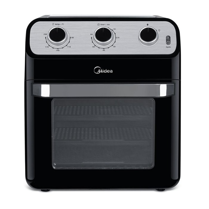 A OvenFryer Midea vai se tornar sua melhor amiga na cozinha! Com 12L de capacidade, permite fritar sem óleo ou assar seus alimentos preferidos para toda a família. Acompanha prateleiras e bandeja laváveis em lava louças e luva térmica para auxíliar na preparação das refeições . Possui porta de vidro de fácil limpeza e luz interna, que permitem melhor visualização do cozimento, timer de até 60 minutos e ajuste de temperatura até 200°C . Além de todas essas facilidades, conta com desligamento automático e proteção contra superaquecimento.