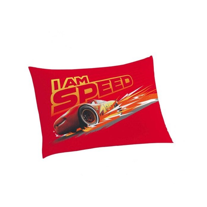 A fronha avulsa da coleção Carros traz toda a velocidade e adrenalina das corridas em sua estampa, ilustrando o incrível Relâmpago McQueen em sua frente, e no verso o competitivo e veloz Jackson Storm. Ilustra também outros elementos que remetem ao contexto do filme. Em tons de vermelho, azul e preto, possui um tecido de qualidade, fácil de lavar, com secagem rápida e que fica mais macio a cada lavagem sem perder a intensidade das cores. Perfeita para decorar e encher de diversão o quarto das crianças que adoram esse filme!