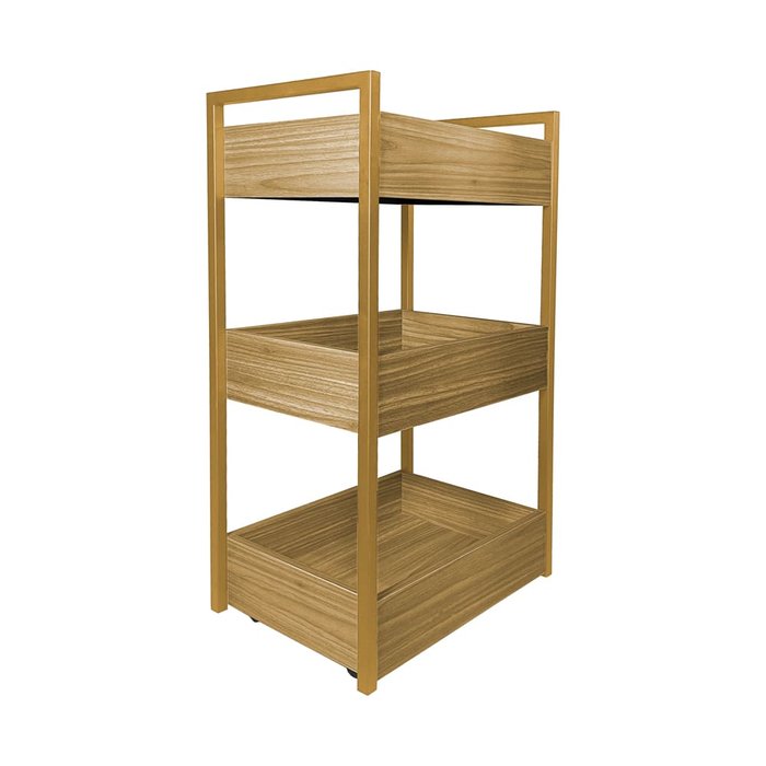 Fruteira 3 Cesta C/ Rodízio Freijó Estilo Industrial Dourada - Belliv Decor Freijó