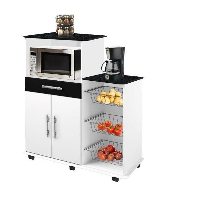 Fruteira Balcão Tamara 06 Rodizios Branco Preto Marmorizado