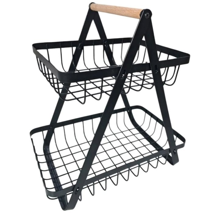 Fruteira Cesto Organizador Duplo Aramado Fruta Legumes Cozinha Mesa Bancada Multiuso Escritorio Arma Preto