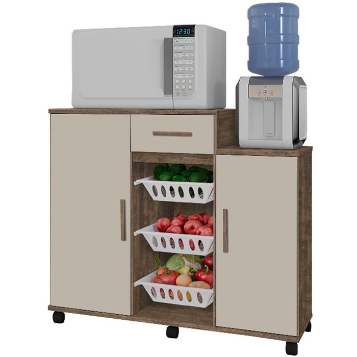 Fruteira com Balcão para Microondas 1 Gaveta Topázio Canela/off White