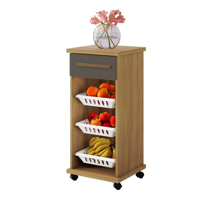 Fruteira Curitiba Branca Arte Móveis 1 Gaveta 3 Cestos Cinamomo/grafite