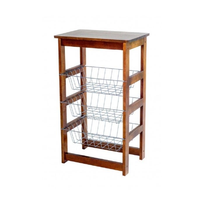 Fruteira de Chão 3 Cestos de Madeira Tabaco