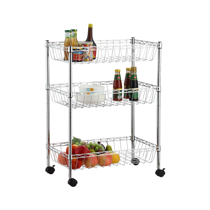 Fruteira de Chão Aço Cromado com 3 Cestos Ajustáveis