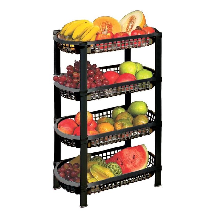 Fruteira de Chão São Bernardo Oval em Plástico com 4 Bandejas Preta