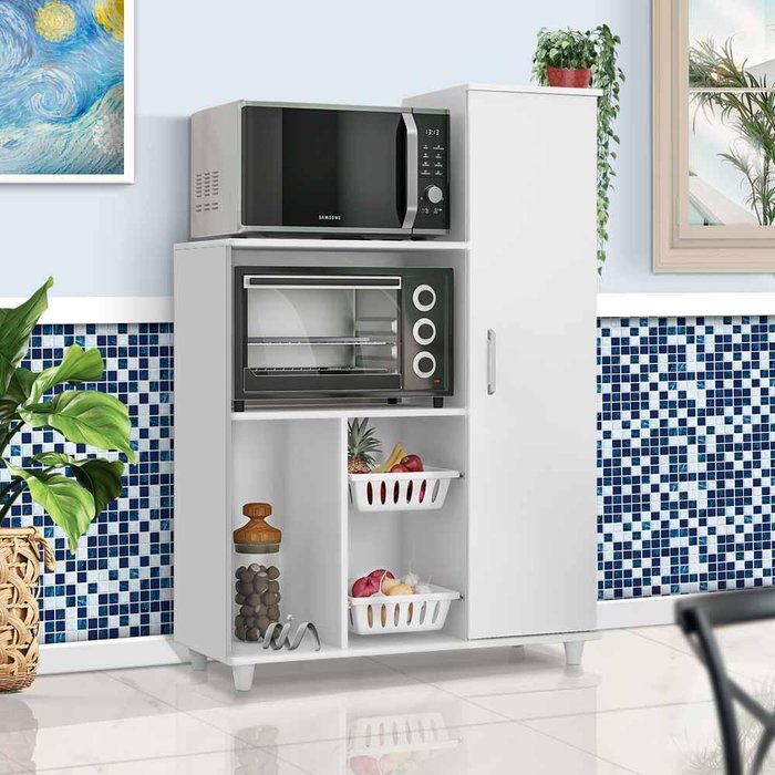 Dimensões do produto: Largura 91,5 cm; Profundidade 36 cm; Altura Superior 133 cm; Altura Inferior 99 cm Itens Inclusos: 1 armário fruteira-MDP-Suporte para frutas em PVC-Porta bem reforçada com 3 dobradiças-Espaço para forno-Espaço para micro-ondasComplexidade da montagem: Média, pode ser montado por mais de uma pessoa e/ou necessite de maior conhecimento para montagem.Recomendações de uso, manutenção e limpeza: Limpar com flanela ou pano macio seco, não utilizar produtos abrasivos, desengordurantes, álcool ou solvente. Não expor o produto diretamente a luz solar e à umidadeGarantia: 3 mesesOBS: Foto meramente ilustrativa, objetos, utensílios e decoração não fazem parte do produto.