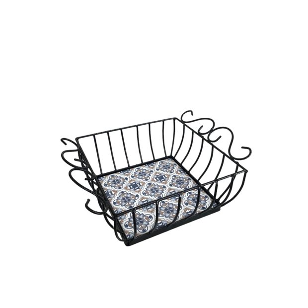 Fruteira de mesa quadrada, confeccionada em material resistente, ferro, com azulejo hidráulico conforme foto do anuncio.