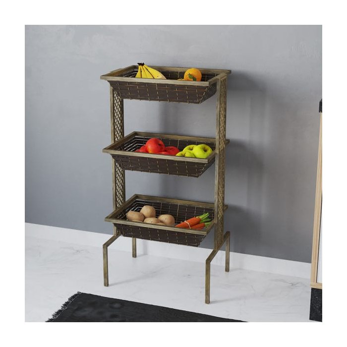 A fruteira Macau proporciona utilidade e beleza em um único produto. Fabricada em aço a fruteira oferece durabilidade e elegância, trazendo mais beleza para sua cozinha. Ela conta com 3 cestos com junco, ideais para frutas e legumes, podendo ser usada também, como organizador, sua lateral é em treliça.