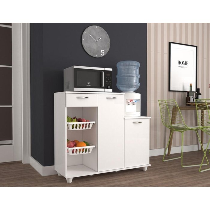Fruteira Dália A Fruteira Dália foi desenvolvida para manter a organização da cozinha, tornando o ambiente mais agradável e funcional. Fruteira Dália é a solução que faltava para otimização de espaço na sua cozinha. Com um amplo espaço interno para deixar tudo ainda mais organizado, conta também com 2 cestos plástico branco,3 puxadores, 2 portas, uma gaveta, prateleiras bem distribuídas, espaço para forno ou micro-ondas e Bebedouro. Além de praticidade, Design Moderno para deixar seu ambiente mais bonito e organizado. Especificações: Altura: 89 cm Largura: 103 cm Profundidade: 38 cm Pintura em alto brilho Produto com espessura de 15 mm em todas as peças. Estrutura em MDP. 6 pés 2 pares de guias plásticas Necessita Montagem? Sim, acompanha esquema de montagem. Itens Inclusos: 1 Fruteira Dália Dicas de limpeza e Informações importantes: