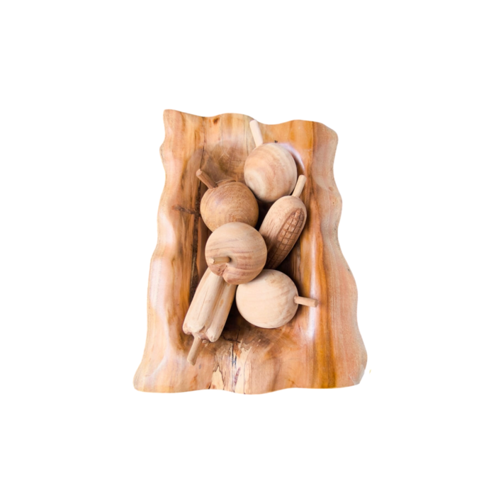 Fruteira Gamela Artesanal de Madeira Angico e 6 Frutas de Madeira