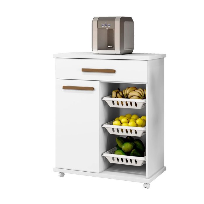 Fruteira Goiânia Arte Móveis 1 Porta 1 Gaveta 3 Cestos Branco Branco