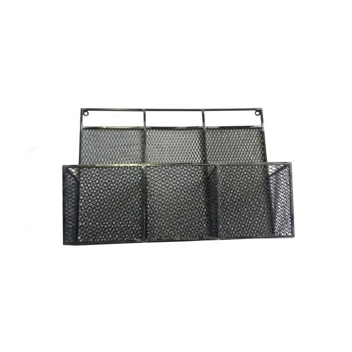 fruteira de parede em ferro, e chapa expandida com 3 cestos, pintura verniz incolor.