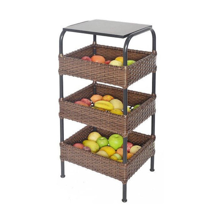 Fruteira Paris em Junco Fibra Sintética Tampo Mdf Preta