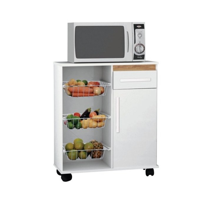 Fruteira Grécia Branco Canelato O Fruteira Grécia é compacta e moderna, deixando sua cozinha ainda mais bela. Possui 1 porta, 1 gaveta, 3 cestos e 4 rodízios. Feito em MDP, puxadores em MDF, cestos em aço e corrediças metálicas. Informações do produto: Altura: 89 cm Largura: 74 cm Comprimento: 36 cm Itens inclusos: 01 Fruteira. Kit completo para montagem e manual de instruções Garantia: 3 meses contra defeito de fabricação Informações Complementares: - Verificar o tamanho e detalhes do produto antes da compra. - Fotos meramente ilustrativa. - A transportadora entregará o produto no andar térreo do endereço de entrega. - Avaliar a mercadoria no ato do recebimento e recusar em caso de divergência ou avarias. - Não nos responsabilizamos pela montagem e desmontagem do produto no ato da entrega e devolução, assim como os custos gerados nestas situações. - Sugerimos a contratação de um montador profissional para a montagem do produto. Não nos responsabilizamos por avarias causadas no ato da montagem.