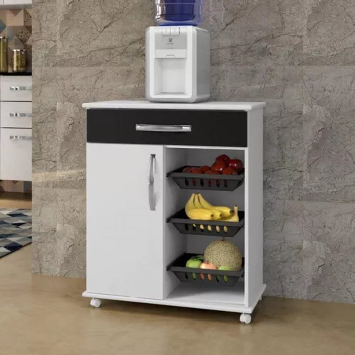 FRUTEIRA MULTIUSO SUPORTE P/ BEBEDOURO GOIÂNIA C/ RODÍZIOS - COR BRANCO/PRETO