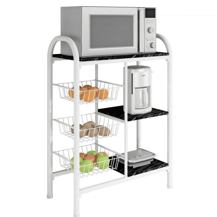 Fruteira Tubo Branco Com Tampo Ardosia Preto Rajado Com Espaço Para Microondas Bm Tubulares
