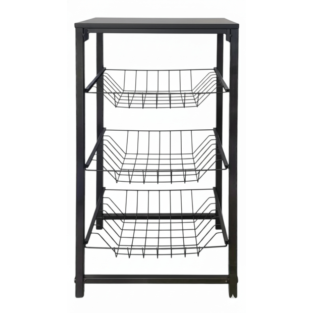 Com quatro níveis espaçosos , a fruteira acomoda frutas, legumes e até galões de água, proporcionando organização