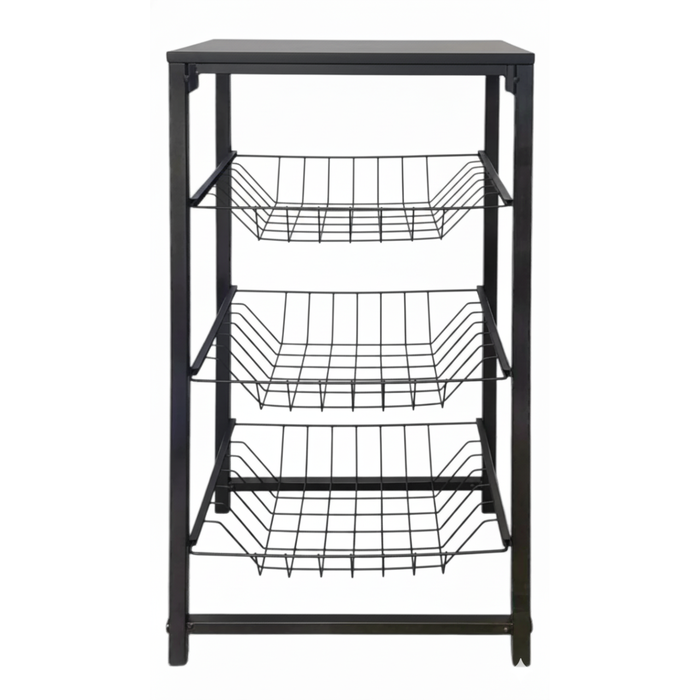 Fruteira Utilyse de Chão Cozinha Metal e Madeira 4 Andares Aramada Preto