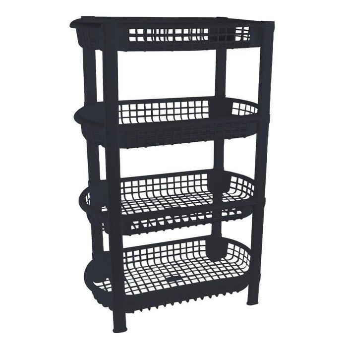 Fruteira Vertical 4 Andares Preta Uma solução prática e estilosa para organizar as suas frutas, esta fruteira será perfeita para manter sua cozinha organizada e suas frutas sempre frescas e acessíveis.Com um formato arredondado, ela não só organiza as suas frutas como também adiciona um toque de elegância à sua cozinha, seu design aberto e arejado também mantém as frutas frescas por mais tempo, permitindo que você visualize facilmente o que está disponível.Seu espaço amplo em quanto níveis acomoda uma variedade de frutas de diferentes tamanhos, ideal para maçãs, laranjas, bananas, uvas e diversas outras frutas.Feitas com materiais de qualidade, possui uma ótima resistência, suportando o peso das frutas sem comprometer a segurança. ESPECIFICAÇÕES:Material: PolipropilenoDimensões: Alt.: 71cm x Larg.: 47cm x Profundidade: 27cmCor: PretoPeso: Aprox. 950g CONTÉM: 01 FRUTEIRA VERTICAL 4 ANDARES PRETO