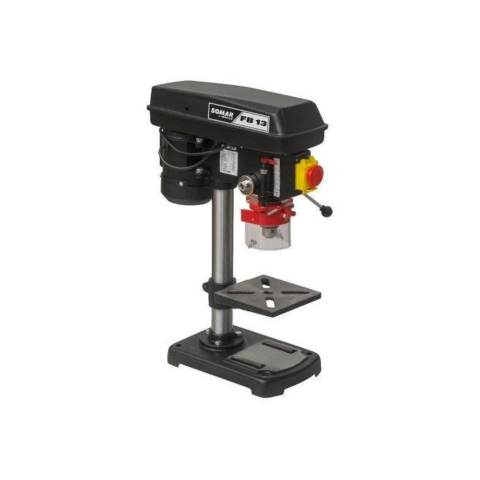 Furadeira de Bancada com Motor de 1/3cv e Mandril de 1/2" Modelo FB13 em 220V da Somar - 18001301 A Furadeira de Bancada FB 13 é o equipamento ideal para aplicações residenciais e profissionais em madeira, plástico e metais. Prática e versátil, apresenta capacidade de furação de até 13 mm (1/2 pol), 5 opções de velocidade com perfuração em escala e sua mesa é móvel (giratória e inclinável +/- 45 graus), o que facilita sua operação nos mais diversos trabalhos em pequenas oficinas, manutenções gerais, marcenarias, serralherias e construção civil. Observações Técnicas: - Equipada com motor elétrico, cabo de ligação e chave liga-desliga. - Mesa giratória inclinável +/- 45 graus. - Sistema de mancais com rolamentos blindados. - Perfuração com escala de profundidade. - Fornecido com protetor de mandril conforme exigência da NR12. - Chave liga-desliga com botão de desligamento rápido, conforme exigência da NR12. - Botão eletromagnético, que não desliga em caso de queda de energia conforme exigência da NR12. - Sem Morsa. Aplicações: - Uso profissional, residencial e serviços leves em pequenas oficinas, manutenção, uso em marcenarias, serralherias e construção civil. Dados Técnicos: - Alavanca de aproximação com 3 braços - Capacidade de corte 13mm e profundidade 50mm - Chave/desliga com botão de emergência - Equipada com motor elétrico - Mandril para brocas de 3/32pol a 1/2pol (2,4 a 12,7mm) - Motor: 1/3cv Monofásico 60Hz - Tensão: 220V - Polos: 4 polos - Dimensões: - Mesa: 180x165mm - Base: 180x160mm - Profundidade de corte: 50mm - Capacidade de furação: Diâmetro 13mm - Velocidades RPM (60Hz): - 1: 3100 rpm - 2: 2350 rpm - 3: 1700 rpm - 4: 1100 rpm - 5: 650 rpm - Capacidade Operacional (Material e diâmetro broca (mm) máximo): - Madeira: 13mm - Alumínio: 10mm - Ferro Fundido FC-150: 8mm - Aço 1020: 5mm Acompanha Nota Fiscal - Código: 18001301 - Marca: Somar