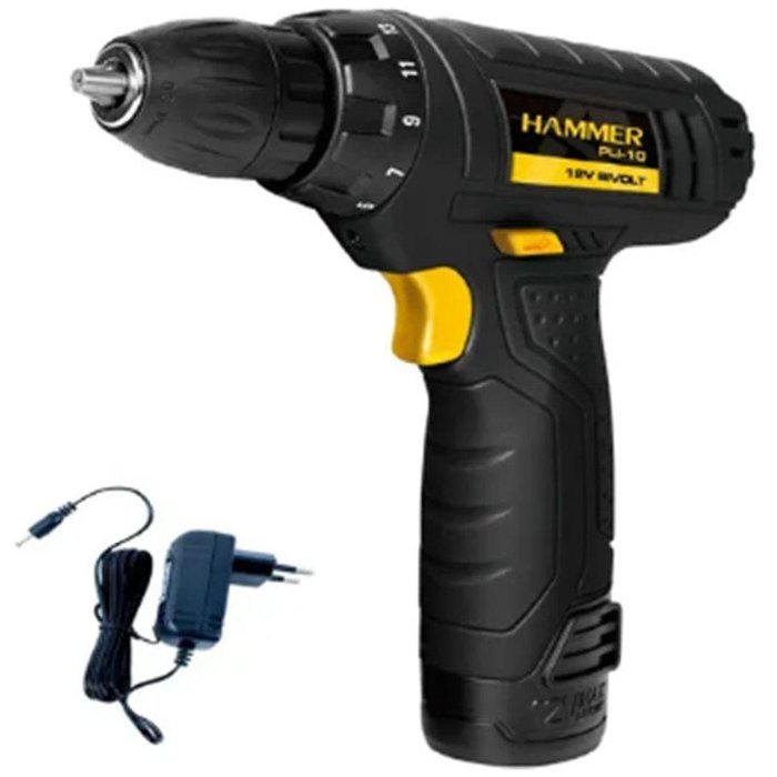 Furadeira Elétrica Parafusadeira A Bateria Uso Domestico FURADEIRA E PARAFUSADEIRA A Furadeira Parafusadeira 3/8" à bateria de lítio 12V GYPLI10 da Hammer é ideal para fazer apertos e desapertos de parafusos, quando utilizada na função "parafusadeirajá quando está na função "furadeira" pode ser efetuados furos em madeira, metais e plásticos.