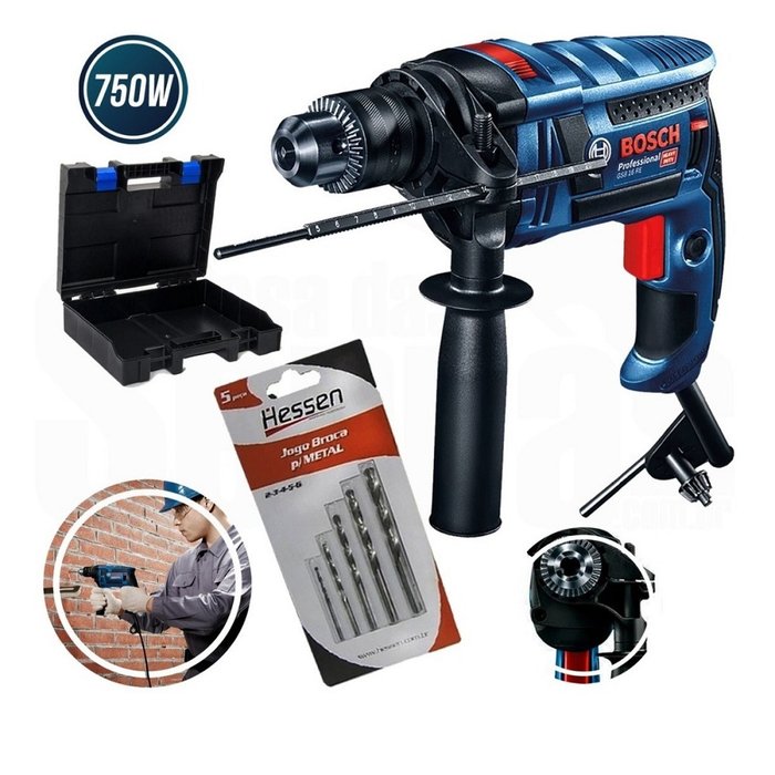 FURADEIRA IMPACTO 1/2 750W GSB 16RE BOSCH + KIT BROCA