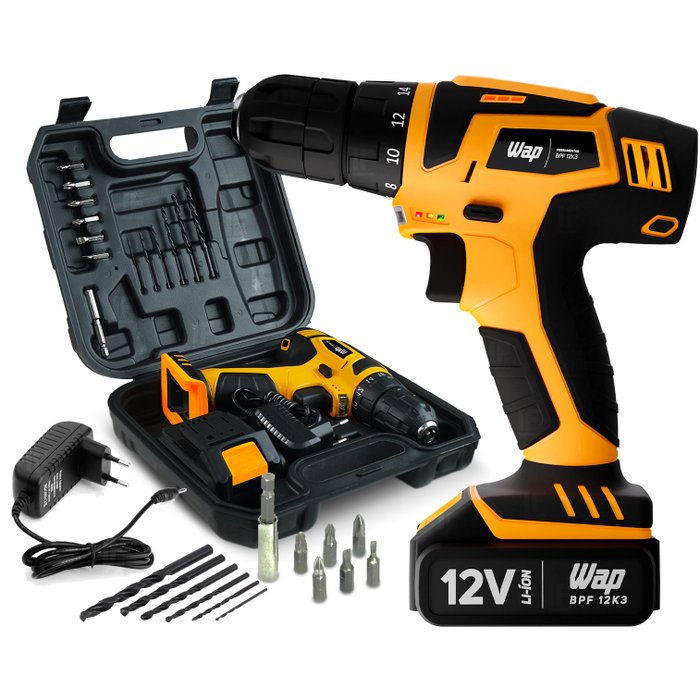 Para quem busca praticidade e eficiência nas diversas tarefas manuais a Furadeira Parafusadeira 3/8" a bateria 12V com kit de brocas BPF 12K3 da Wap é é a solução ideal. Com design exclusivo WAP, é uma ferramenta compacta, porém robusta, ideal para pequenas reformas e manutenção do lar.