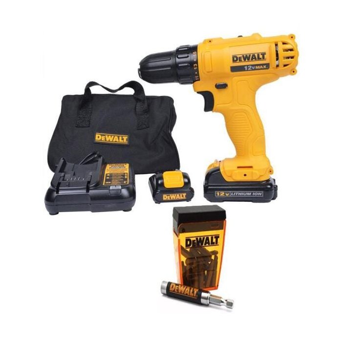 Furadeira Parafusadeira 12v Bivolt Dewalt Dcd700 C2 2 Baterias + Kit 16 Peças Dewalt.