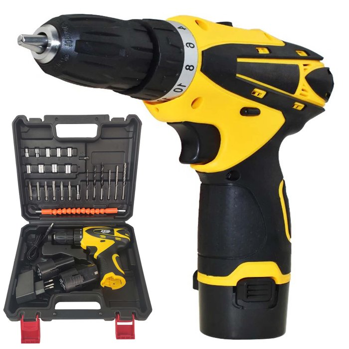 Furadeira Parafusadeira 2 Baterias Bivolt com Maleta Ferramentas 21v Construção Kit Broca Chaves Cas