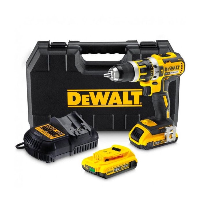 A Dewalt DCD796D2-B2 possui empunhadura emborrachada, mandril sem chave 1/2" (13 mm), aperto rápido que permite troca de acessórios de forma rápidam gatilho eletrônico com velocidade variável e reversível, luz de LED para maior visibilidade na área de trabalho.