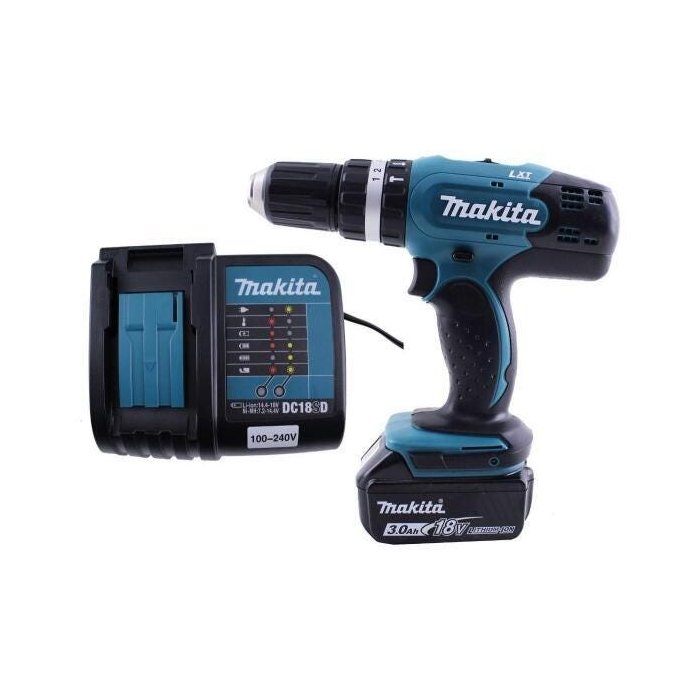 Esta furadeira e parafusadeira de impacto com 1 baterias de 18 V modelo DHP453 da Makita é uma ferramenta desenvolvida para a função de fazer furos com impacto em diferentes materiais como o tijolo, o concreto e a pedra, mas também pode ser utilizada para furar madeira, metal, cerâmica e plástico sem impacto.