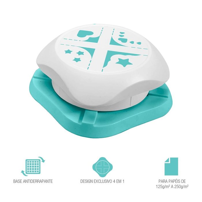 Furador de Cantos de Papel para ArtesanatoO Furador de Cantos 4 em 1 - Estrelas e Corações - Mimo é perfeito para você fazer cantos arredondados incríveis em diversos tipos de papéis com gramaturas entre 125g/m² e 250g/m². De forma super rápida, ele possibilita o arredondamento personalizado dos cantos de papel com 4 diferentes formatos de estrelas e corações.Esse Furador de Cantos de Papel Mimo é muito versátil e possui exclusivo design confortável para manuseio. A base dele é antiderrapante, o que dá mais precisão durante o uso, evitando que o furador se movimente nesse processo de furação.Furador de Papel para Artesanato