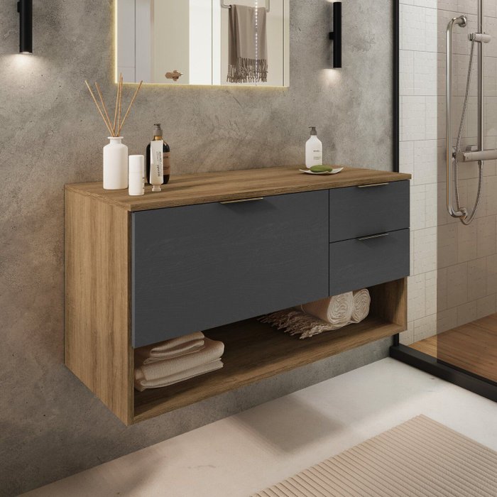 Gabiente para Banheiro Suspenso 1 Porta 2 Gavetas Mel/Grafite