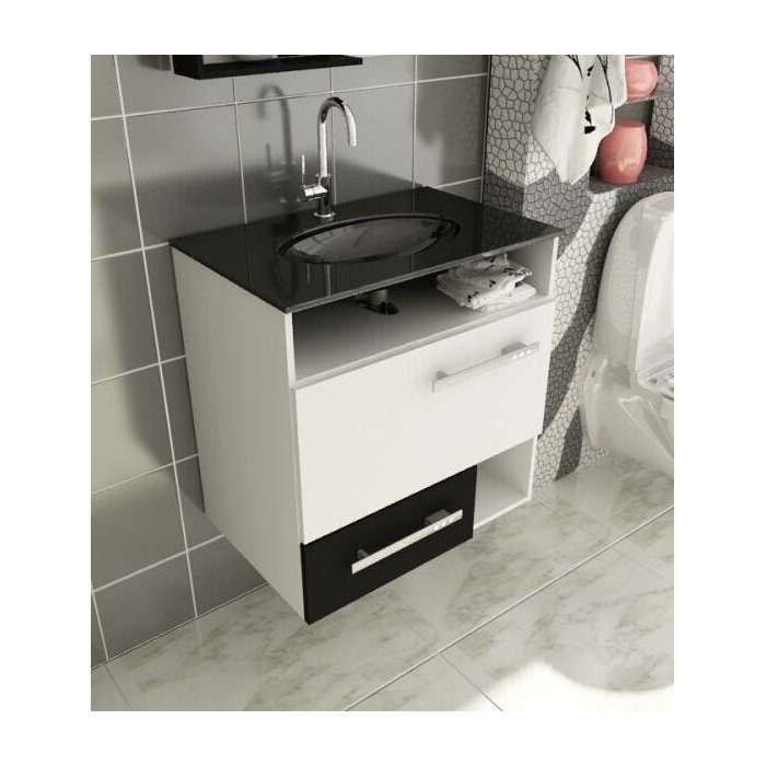 Gabinete 17 Preto 60 Pia Linea Tomdo branco e verde
