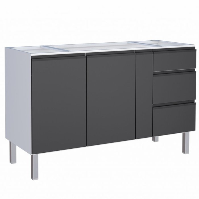 Gabinete Aço Pia 1,50 Gaia Flat Cozinha Preto Cozimax