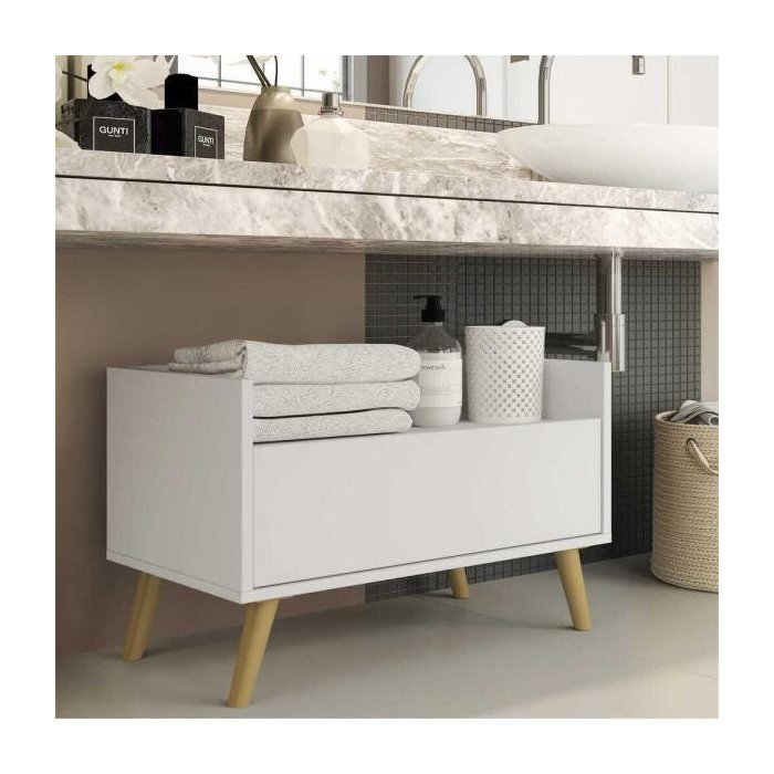 Gabinete Armário Banheiro 60cm com Pés Retrô Multimóveis Branco/Natural