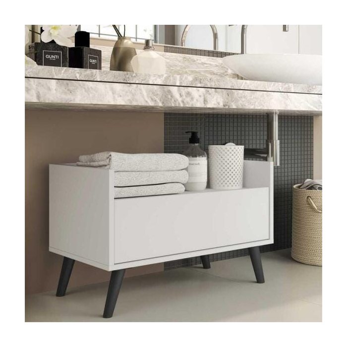 Gabinete Armário Banheiro 60cm com Pés Retrô Multimóveis Branco/Preto