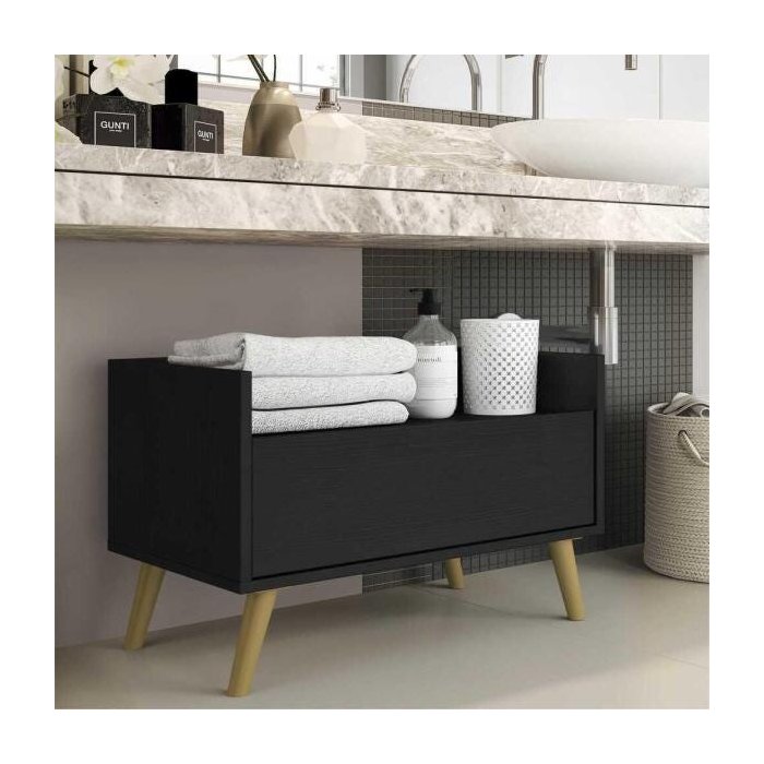 Gabinete Armário Banheiro 60cm com Pés Retrô Multimóveis Preto/Natural