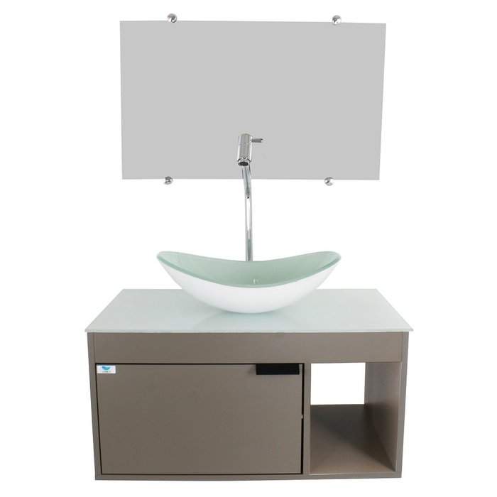 O nosso conjunto para banheiro é perfeito para você que busca por qualidade e modernidade para seu lar, são indicados para projetos arrojados e de muito bom gosto, além de valorizar o seu ambiente com sofisticação em uma decoração de alto padrão, ele consegue usufruir das vantagens e combinação perfeita de vidro e MDF/MDP.O tampo e a cuba de vidro são pintados com tinta de alta performance, o que lhe garante a permanência da cor original.O armário e produzido em MDF/MDP com acabamento acetinado com bilho.Dados Técnicos Itens Inclusos:- Tampo de vidro temperado com furo para instalação da torneira de (3,5cm diâmetro) e da válvula click (4,5cm diâmetro)- Cuba de vidro- Espelho incolor- kit parafusos completo para instalação- Válvula clickDimensões:- Tampo de vidro temperado: 61cm x 36cm (largura x profundidade)- Cuba de vidro: 38cm x 26cm x 12cm (largura x profundidade x altura)- Espelho: 60cm x 35cm (largura x altura)- Válvula: 1" 1/4Espessuras:- Tampo de vidro temperado: 6 mm- Cuba de vidro: 6 mm- Espelheira: 3 mmRecomendações de Uso: Limpar com pano umedecido seguido de pano seco.Garantia: 3 meses (conforme política de troca e devoluções).Atenção: Preço referente somente ao gabinete, não acompanha torneira.Montagem: Montagem e instalação não inclusa na venda ou preço do produto, elas são de inteira responsabilidade do cliente.* Imagens Ilustrativas.